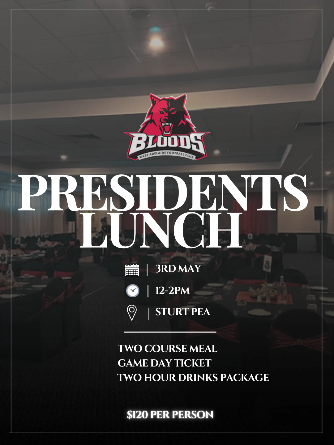 Enjoy a two course set menu, premium drinks package & fantastic guest speakers, all before heading to the Oval to witness what will be one of the biggest homes games of the year!